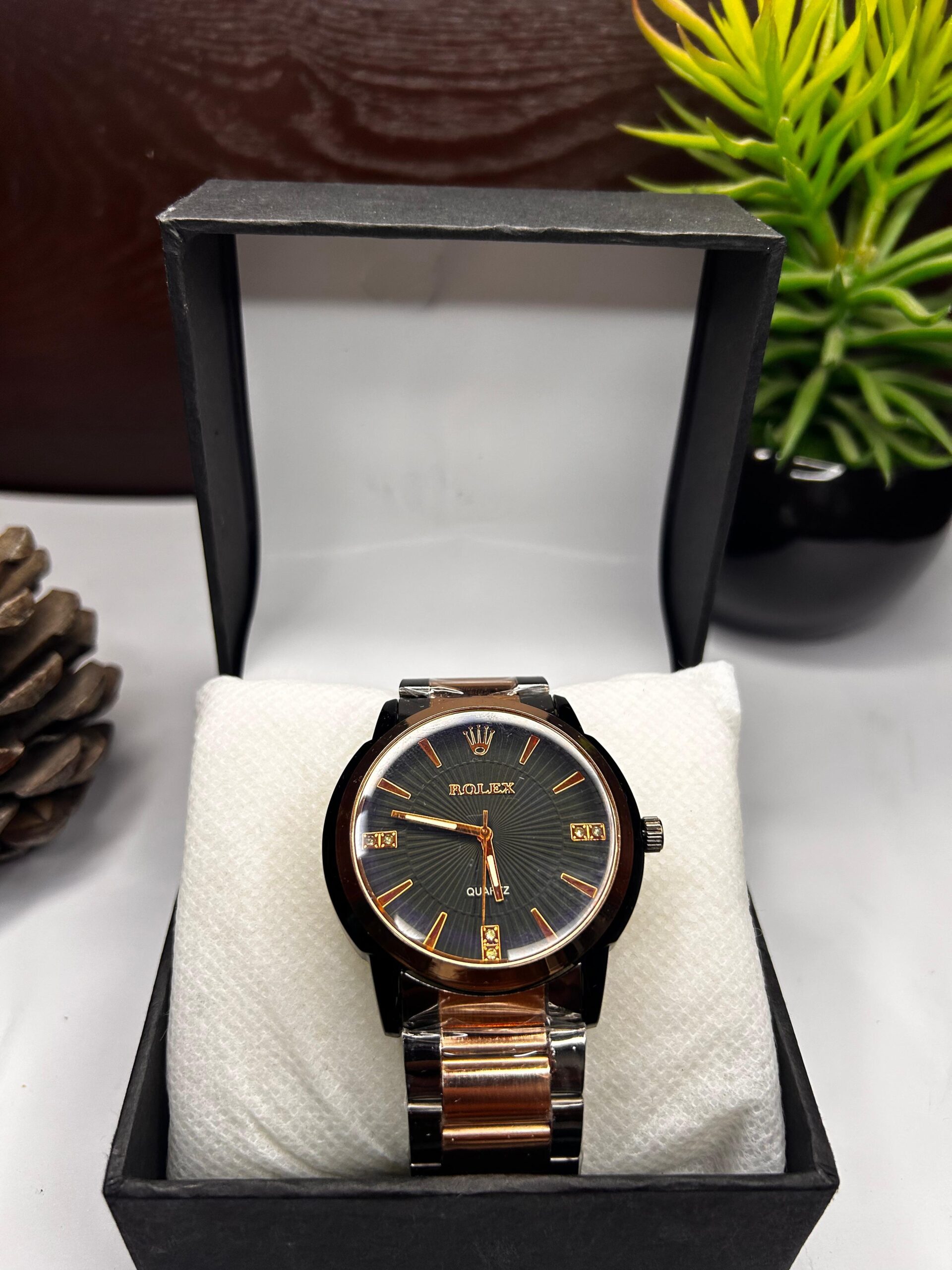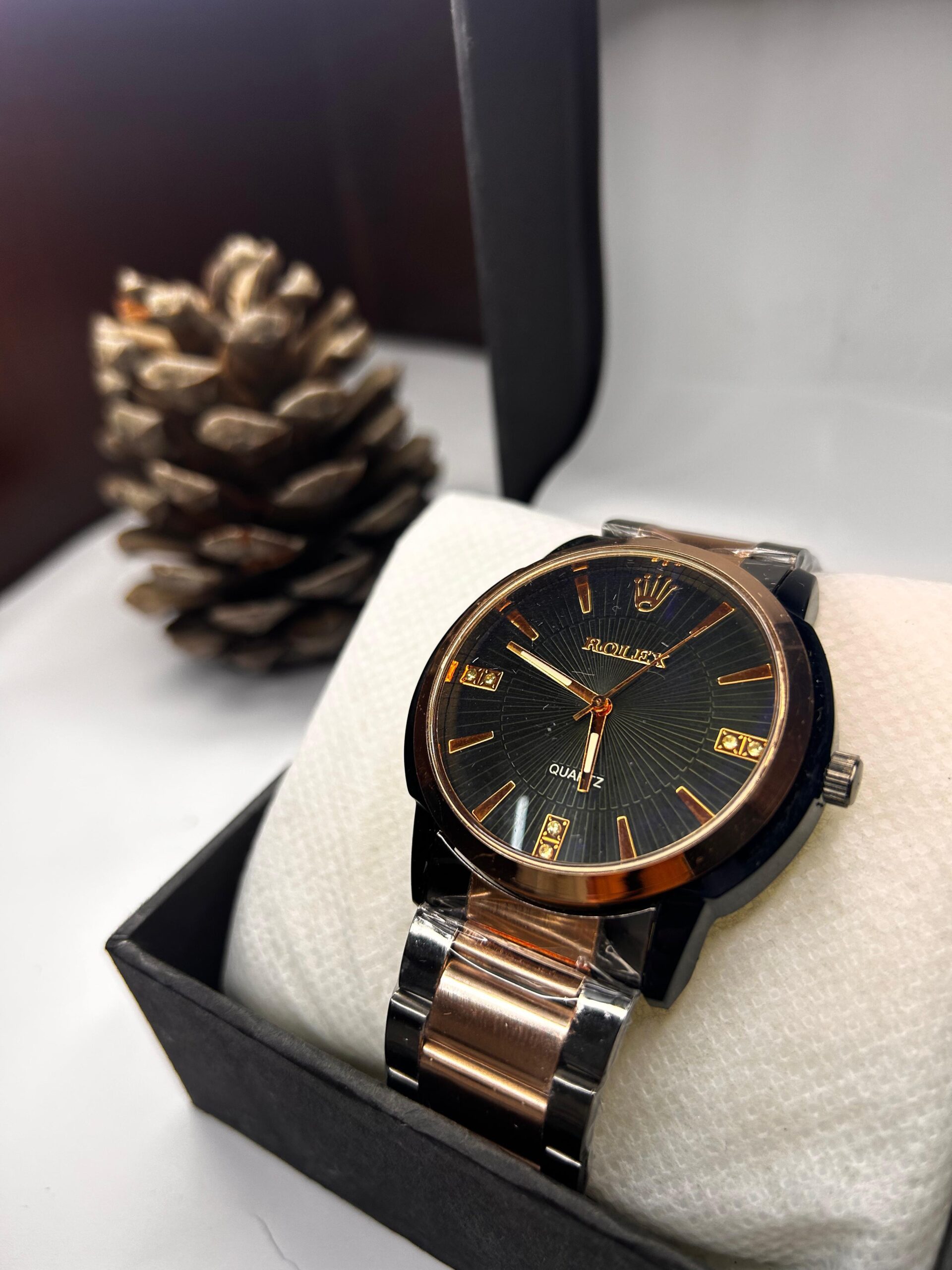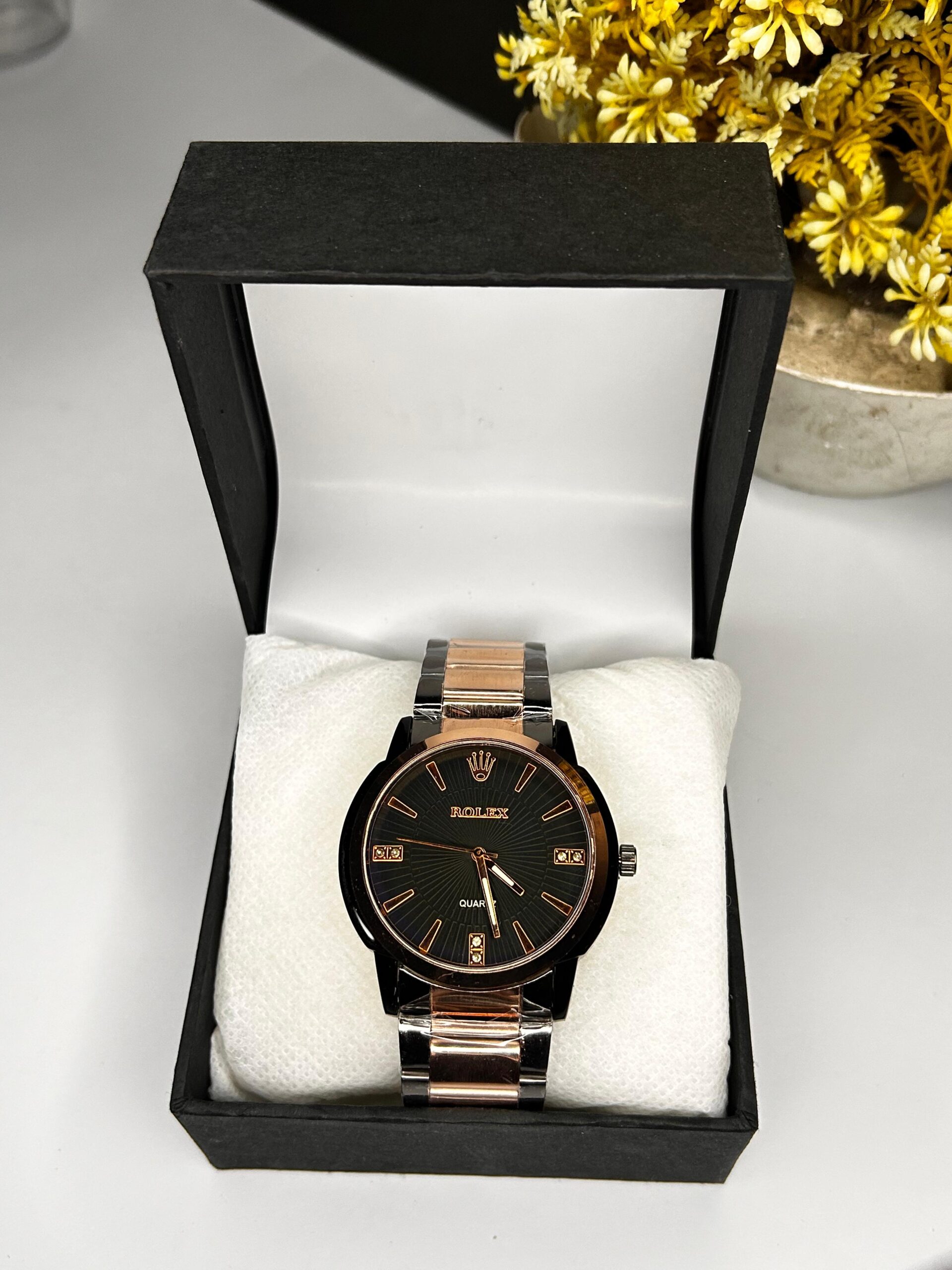 Stylish black dial with rose gold finishing – adds charm to your wrist.